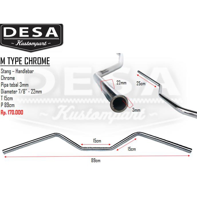 New Handlebar Stang Motor Custom M Type Chrome Ori 100 Asli