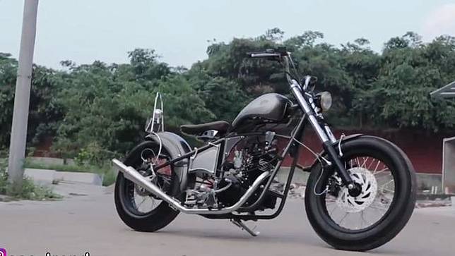 Terpakai Mesinnya Saja Kawasaki W175 Disulap Menjadi Chopper
